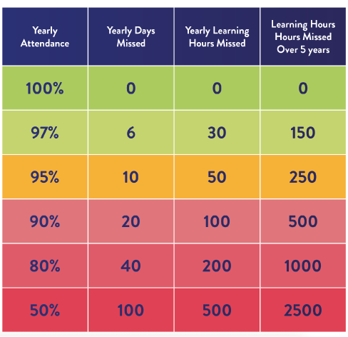 All students at Larks Hill are set an attendance target of 97% or above. Students with 97% attendance and above are more likely to: